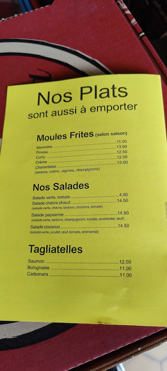 Seafood lovers can also indulge in their Moules Frites with various flavors, including Marinière, Pineau, Curry Crème, and Charentaise. The salad offerings range from simple choices like Salade Verte and Salade Tomate, to more filling options such as Salade Paysanne and Salade Cocorico, perfect for a lighter meal.